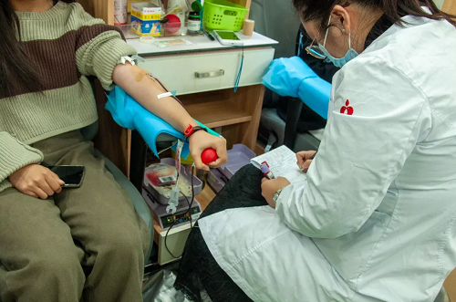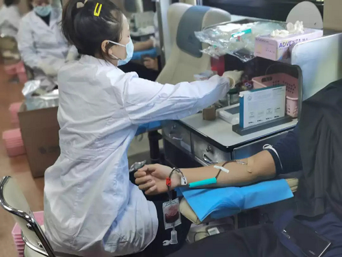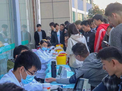 我校师生积极奉献爱心,踊跃加入到献血队伍当中。活动现场温馨有序,保障工作充分有力。学校志愿者们耐心细致地做好服务工作,时刻关心着献血志愿者的状态,适时为排队等候的同学送上热水、牛奶、饼干等食物,详细叮嘱献血前后的注意事项。医务人员有条不紊地为献血的同学们进行血液检测、采血,献血结束后由工作人员为志愿献血者发放营养补品和纪念品。