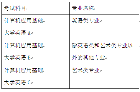 《计算机应用基础》、《大学英语》(A、B、C)统考科目均实行机考闭卷考试,每场考试时间为90分钟。