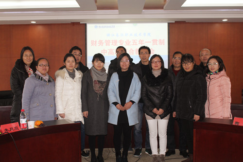 为进一步加强财务管理专业五年一贯制中高职之间的合作与沟通,共同研究并完善五年一贯制财务管理专业人才培养方案,及时解决专业建设、课程建设、教材建设中出现的问题,做好中高职各项教育教学活动的衔接工作。财务管理系于2015年12月18日召开了财务管理专业五年一贯制中高职联合教研组成立暨首次教研会,出席本次会议的有:奉化市职业教育中心学校的蒋巧芬老师、项梁燕老师,兰溪市职业中等专业学校的蒋水生老师、吴慧玲老师,玉环县中等职业技术学校的林维银老师及财务管理系财务管理专业的相关老师。会议由财务管理系副主任鞠岗老师主持,教务处副处长朱月双老师列席了会议,并就会议内容发表了指导性建议。