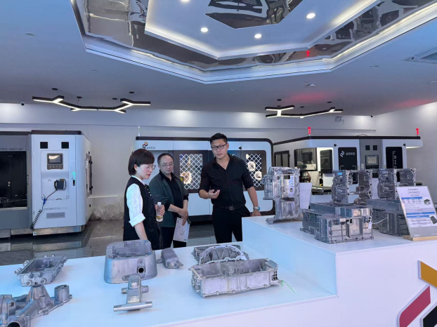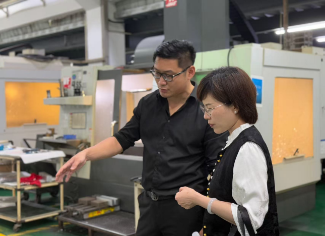 随后,在金业成的陪同下,葛玲妹一行参观了企业文化长廊、生产车间、数字化运营部门,详细了解了公司的业务规模及岗位人才需求。
