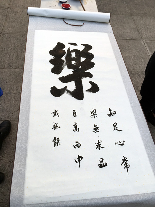 随着古筝声悠然飘起,选手们挥毫笔墨,笔走龙蛇,恢宏的气势引来现场观众们的啧啧赞叹。墨液飘香间,“海纳百川”、“厚德载物”一个个苍劲有力的字体跃然纸上,令人如沐春风。民乐协会的女生们带来的悠扬琴声,让现场的每一位观众都心旷神怡,仿佛置身于仙境。琴声与书法浑然一体,时而给人激情,时而给人平静,转换平和自然,充分展示“古韵书飘香,挥毫墨潇洒”的魅力。