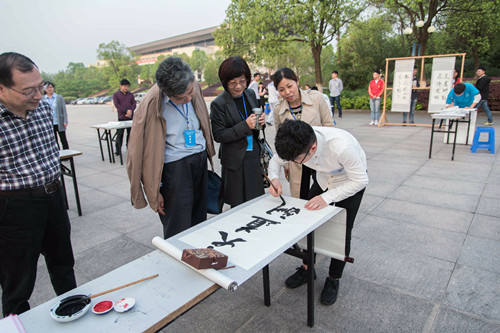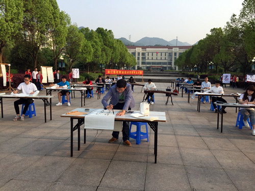 2016年4月13日下午,我院书法大赛在图书馆前广场拉开帷幕。本次比赛由学院团委主办,学生社团联合会、院书法协会和民乐协会承办。省教育厅相关专家及学院领导莅临指导、观看。本次大赛分为软笔和硬笔两类,要求自由发挥,不限字体风格。参赛选手由各系推选而出,各施其才。