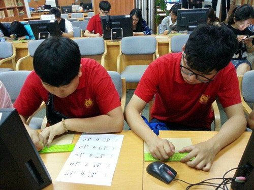 5月23日下午,我院十多名志愿者们前往浙江图书馆省视障碍信息无障碍服务中心参加爱心助盲活动。