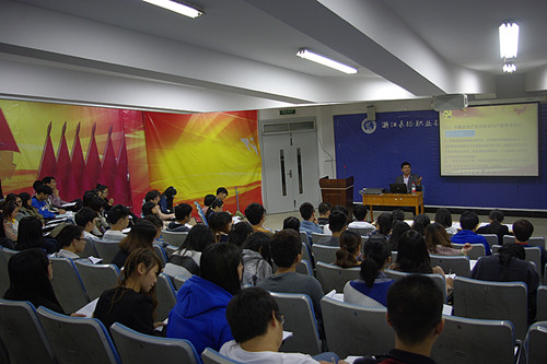在激昂的国歌声中,开学典礼拉开了序幕。公寓党校校长刘东老师主持典礼。他以“作为一名入党积极分子,如何以实际行动践行党的群众路线”为主题带同学们初步认识中国共产党,并重点解读了“群众路线”的含义。他列举多个现实例子,深入浅出,用简明的方式告诉学生们,一个立志成为中国共产党的大学生该有的行为举止。最后,刘老师发表了自己的感想,并对同学们寄予了厚望。